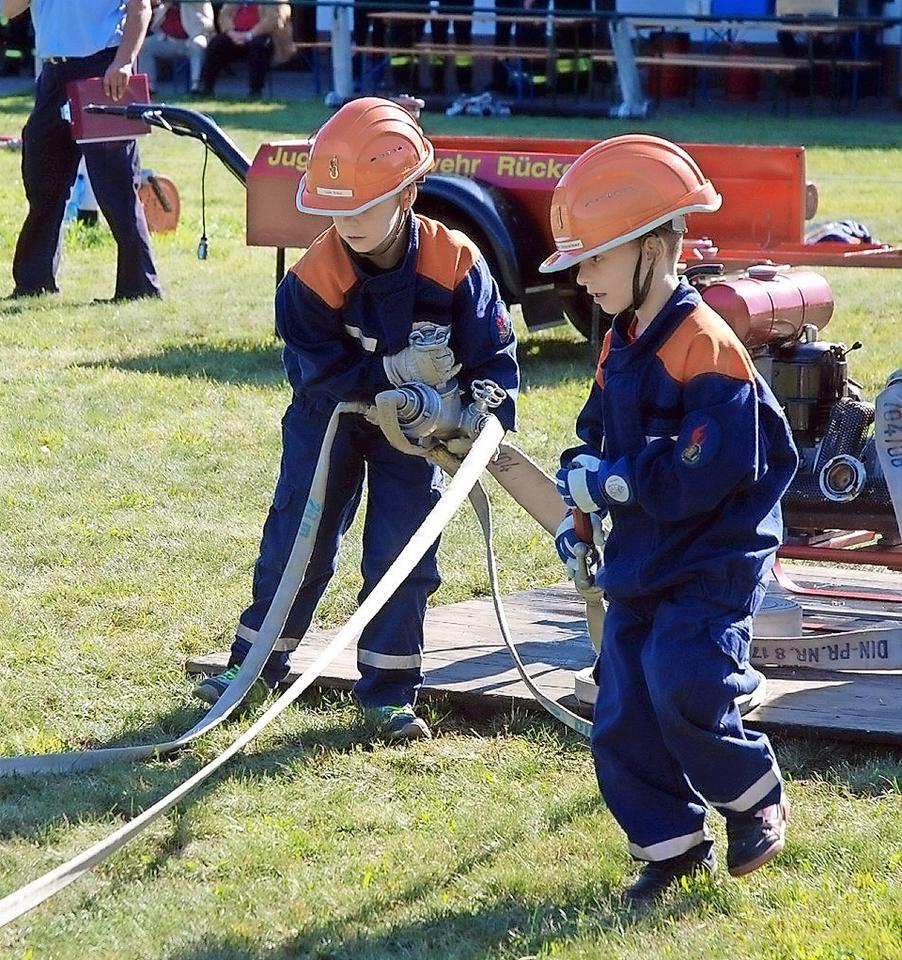 Amtsausscheid Elsterland: Schnelligkeit und Geschick waren gefragt, als acht freiwillige Wehren um Zeiten und Platzierungen rangen. Wanderpokale gingen an die Jugendfeuerwehr Rückersdorf und erneut nach Fischwasser.